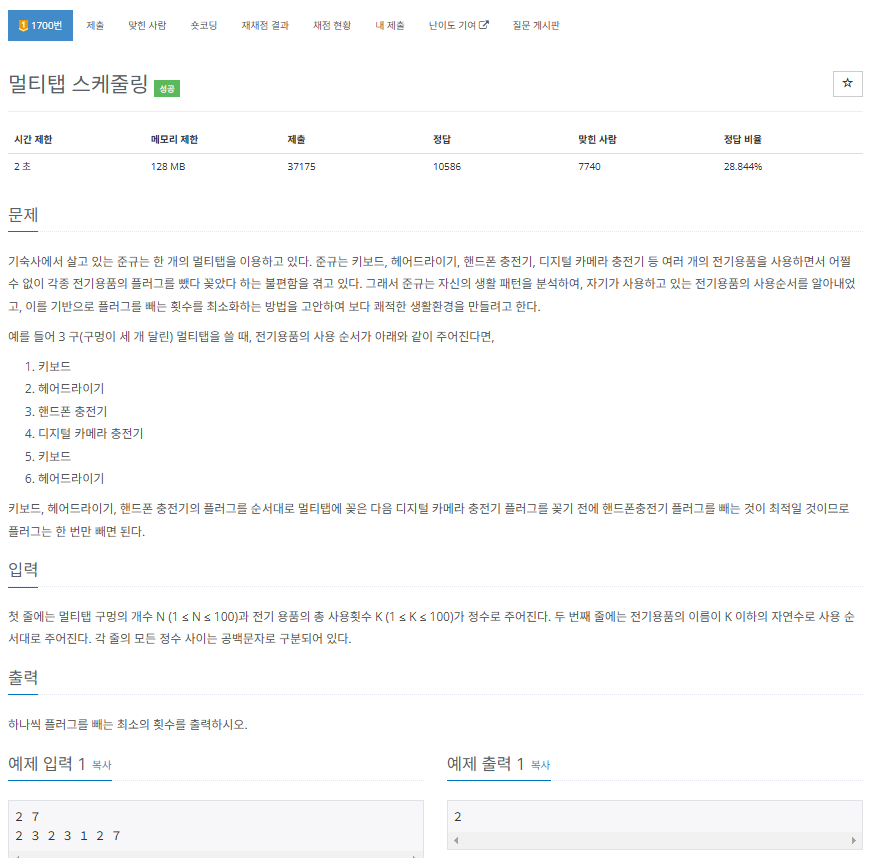 https://www.acmicpc.net/problem/1700