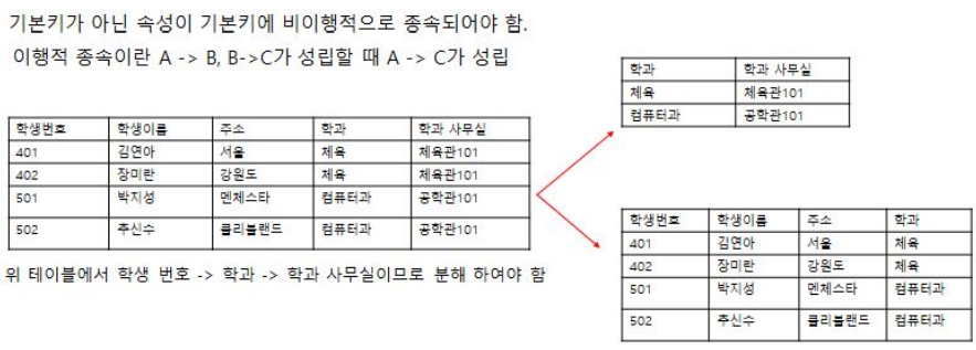 : 제 2 정규형을 만족하면서, 모든 비 기본키 속성이 기본 키에 비이행적으로 종속되도록 하는 것
