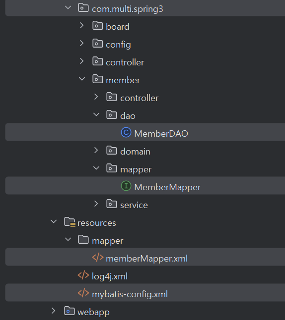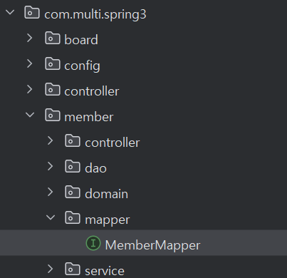 | MyBatis 매퍼 인터페이스 | MemberMapper | Java 파일 | com.multi.spring3.mapper |