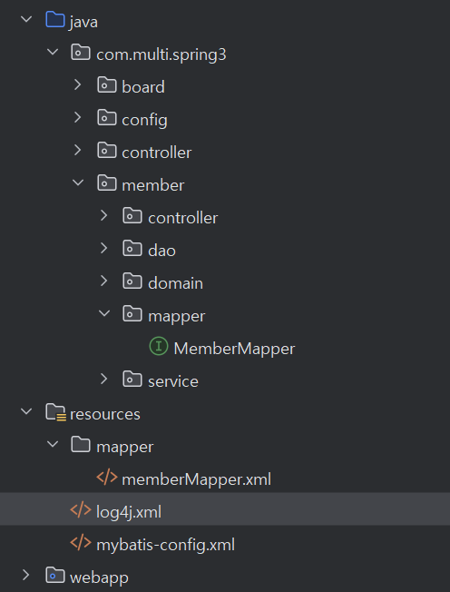 | MyBatis 매퍼 XML 설정 파일 | memberMapper.xml | XML 파일 | resources.mapper |